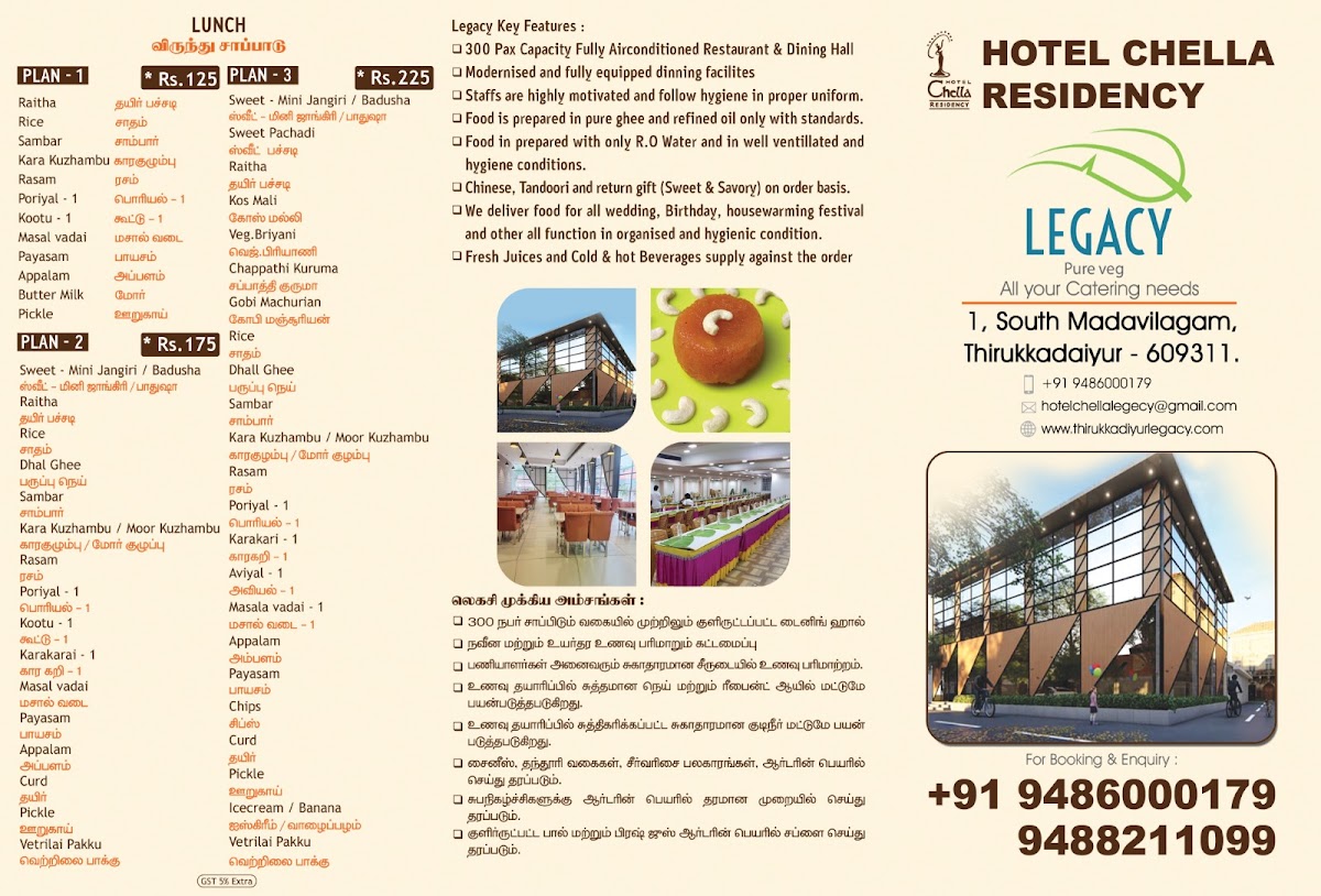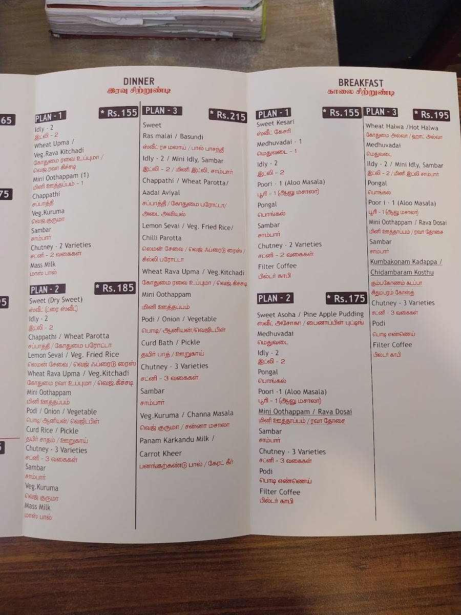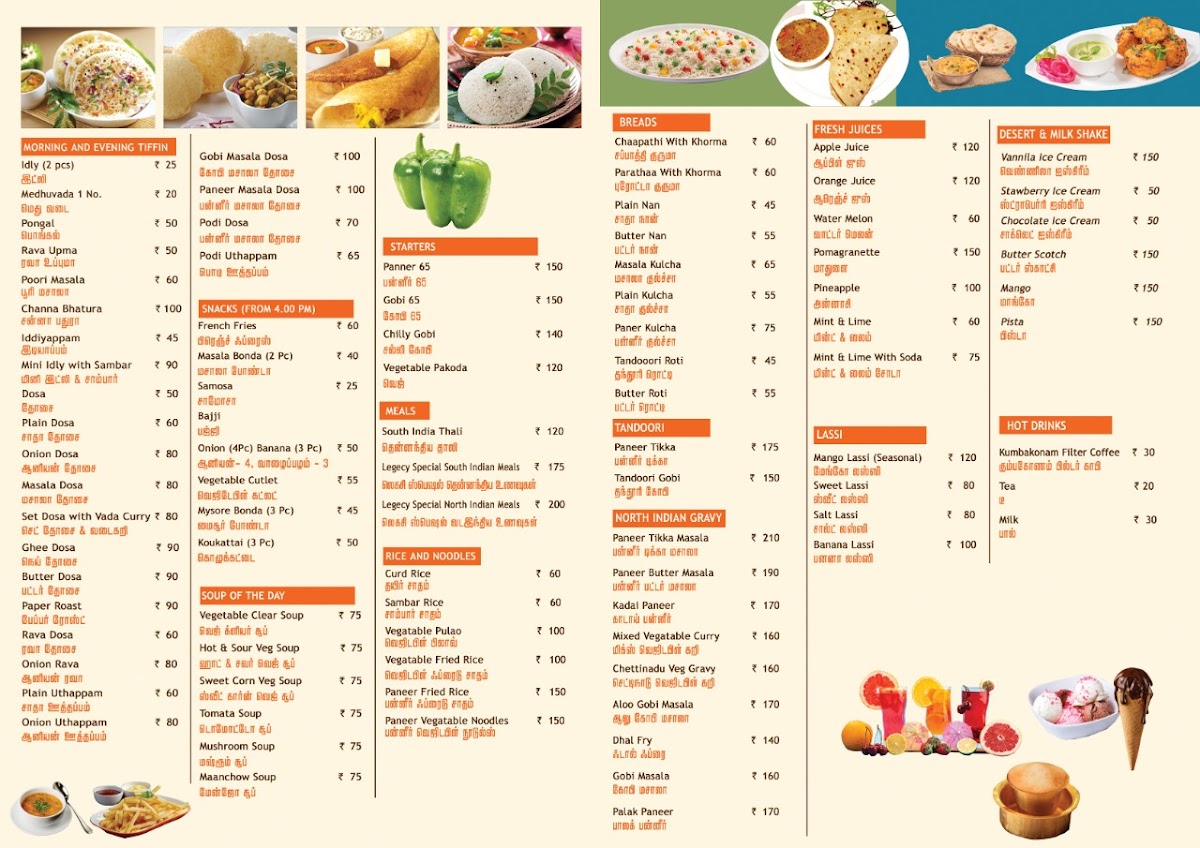 The menu at Chella Legacy offers a comforting selection of vegetarian dishes inspired by traditional South Indian flavors. This café-style spread is perfect for starting the day or enjoying a relaxed meal any time, with simple yet thoughtfully prepared items designed to feel familiar and satisfying.